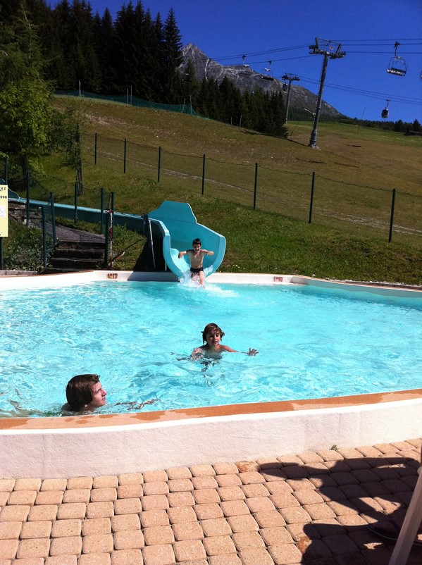 Abdenour dans le toboggan de la piscine de la station