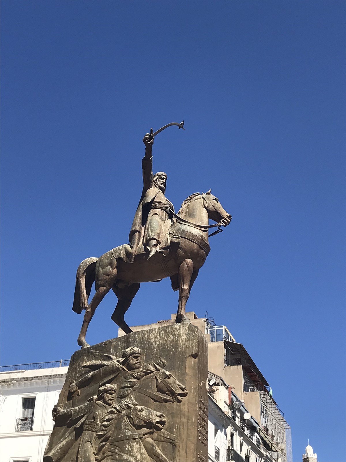 Place Emir Abd El Kader: un pigeon sur l'épée