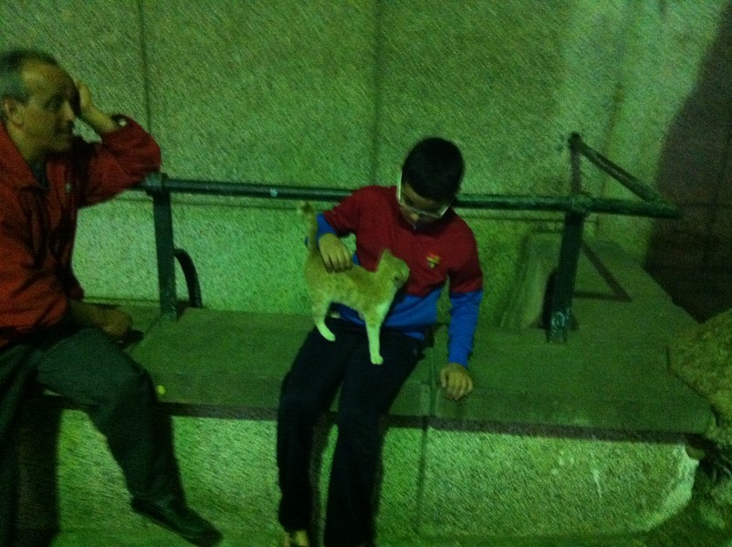 Premier contact entre un chat et Djaffar devant la mosquée de l'hôpital Mustapha