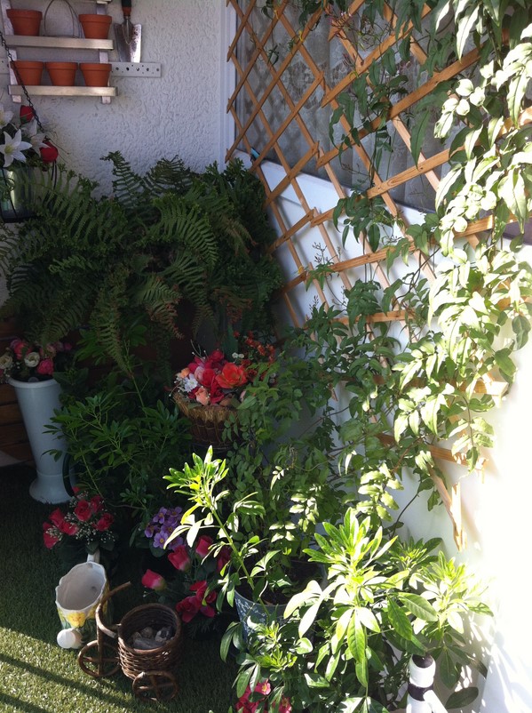 Un coin de mon balcon, le jasmin portugais commence à fleurir!