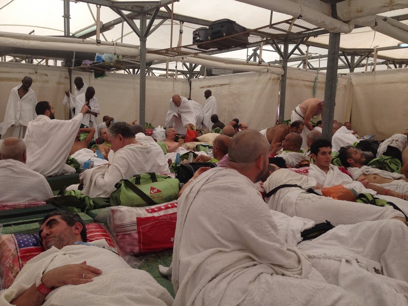 à Mina, sous la tente, tout confort, climatisée, matelas pliables, boissons friches à volonté...