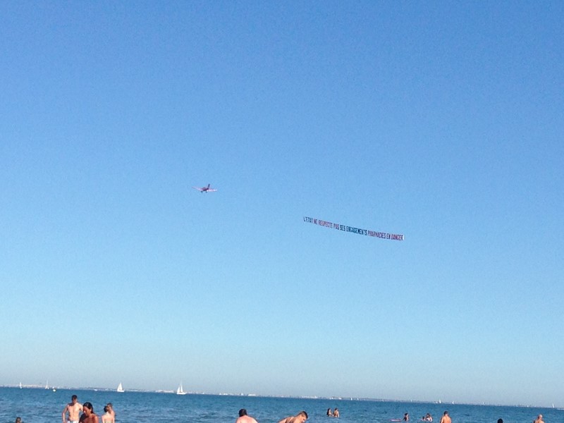 à la plage "Petit travers": la publicité dans la ciel aussi