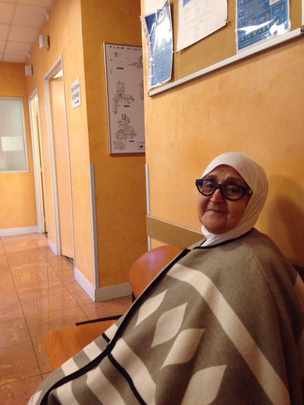 Dans la salle d'attente pour faire le scanner
